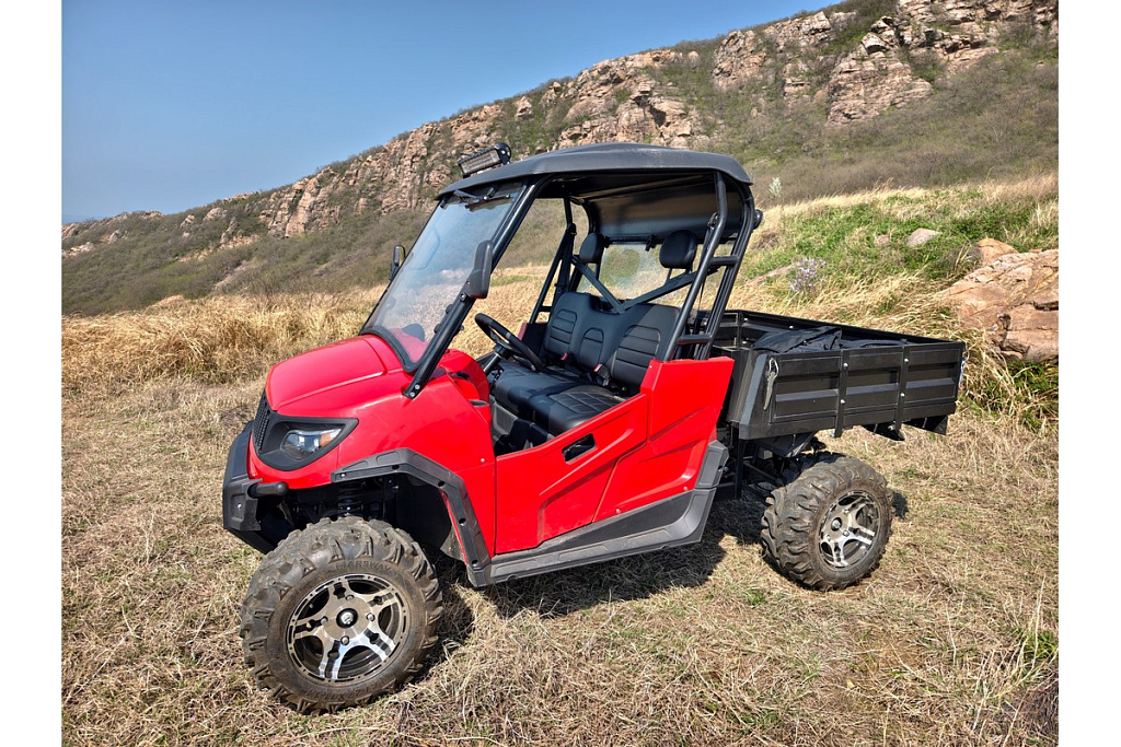 Усилитель руля и грузовой кузов до 400 кг делают квадроцикл отличным помощником для хозяйственных задач.